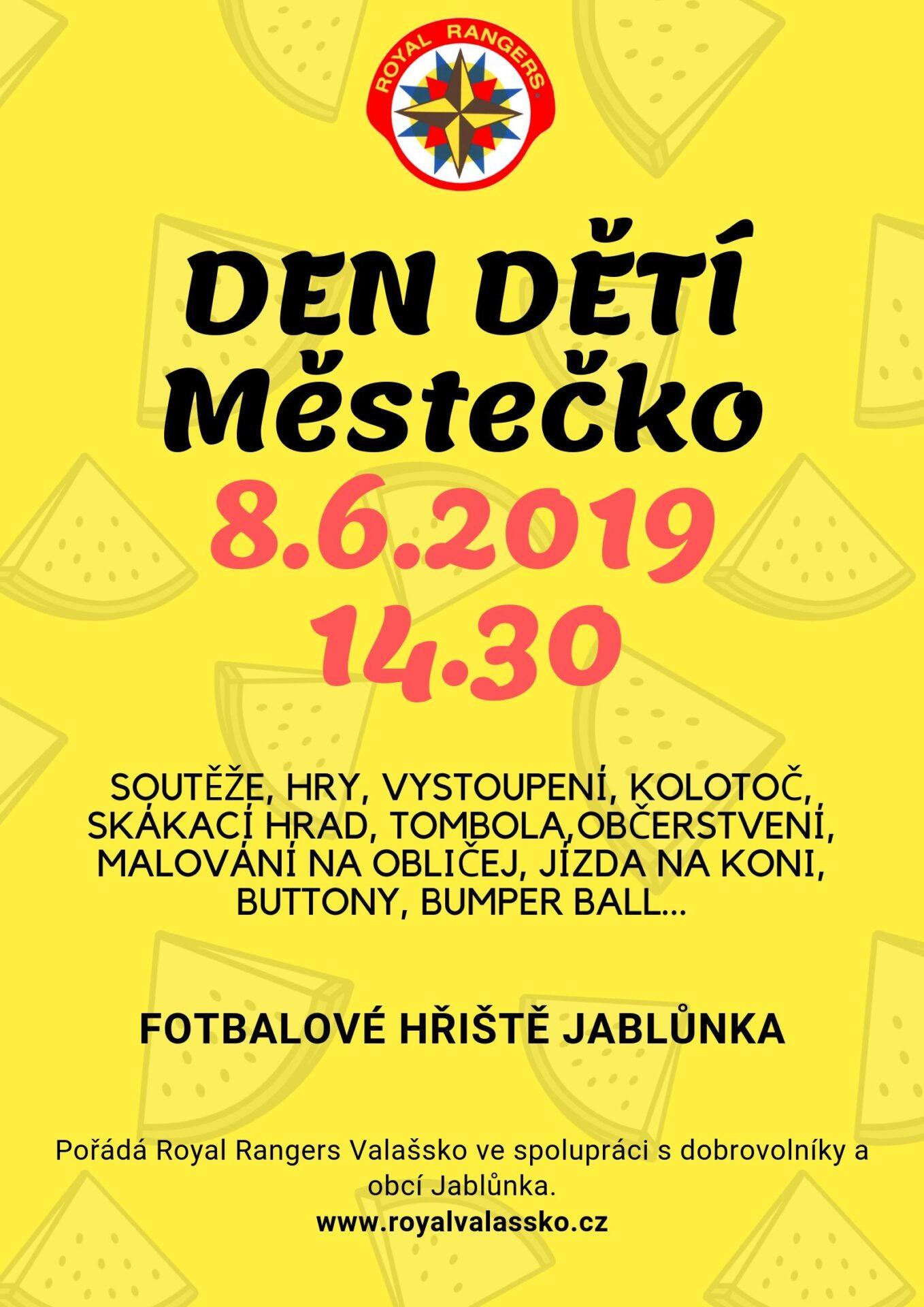 Městečko bude probíhat v sobotu 8.6.2019 – na fotbalovém hřišti v Jablůnce.