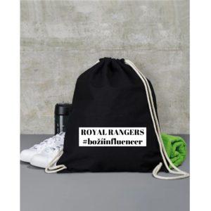 - černý batůžek se šnůrkami s nápisem -#božíinfluencer – Royal Rangers