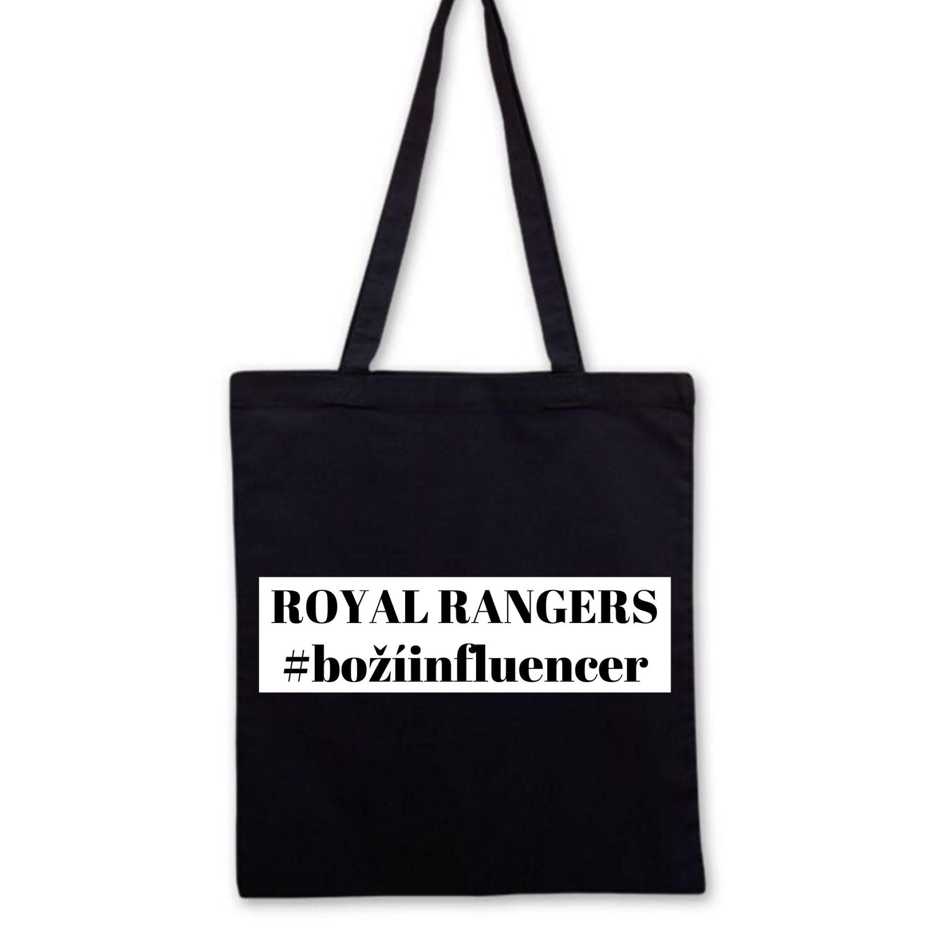 - černou tašku s velkými uchy s nápisem – #božíinfluencer – Royal Rangers